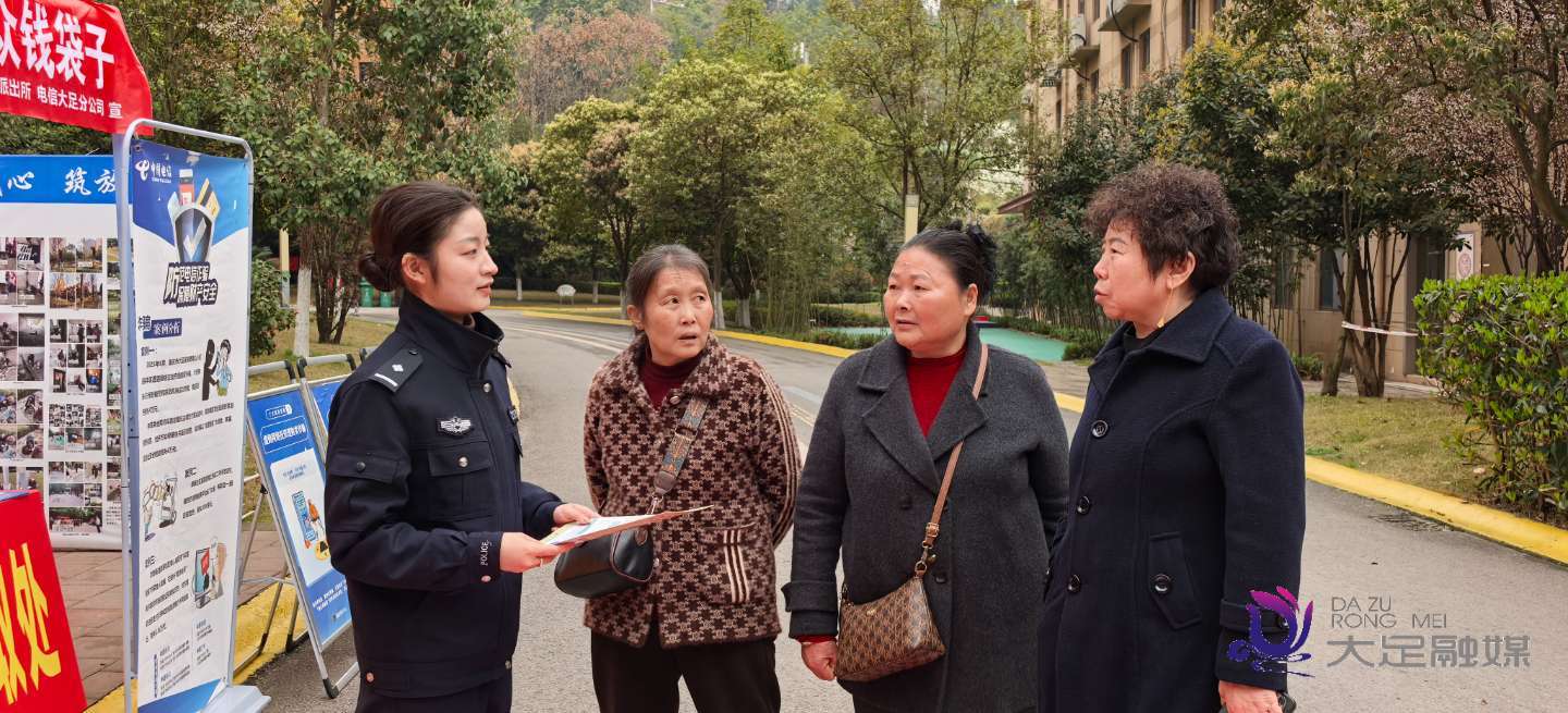 近日,中国电信大足分公司联动大足区公安局龙岗派出所、区市场监督管理局、龙岗街道北禅社区及岭寓物业,走进小区开展“送平安·打击传销”宣传活动。
