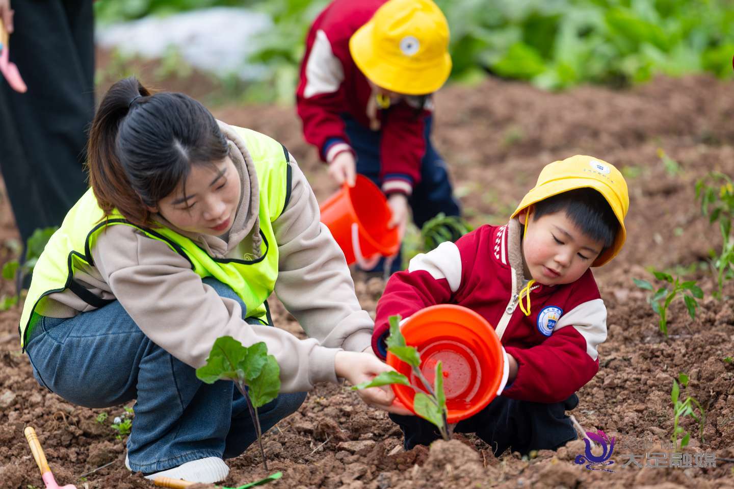 随后,在老师指导下,家长与孩子分工协作,手持小铲子、浇水桶,认真地松土、栽苗、浇水。大手牵小手,小心翼翼呵护每一株幼苗,田间地头满是温馨的身影与欢快的笑声。孩子们在劳动中感受泥土芬芳、体会生命力量,家长们在陪伴中见证成长、拉近亲情。