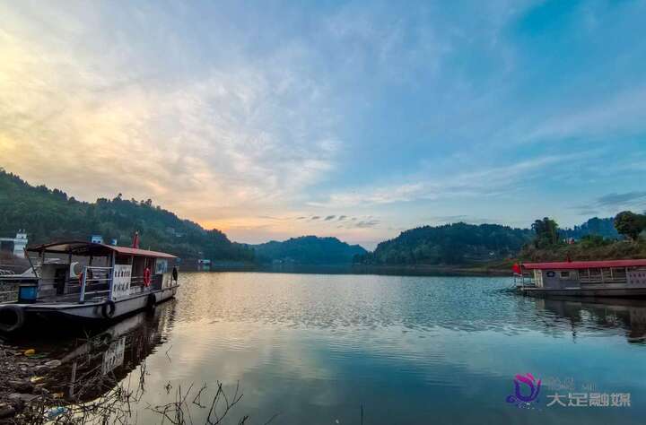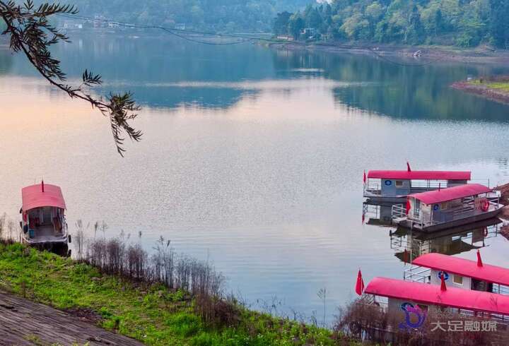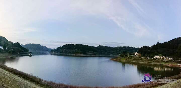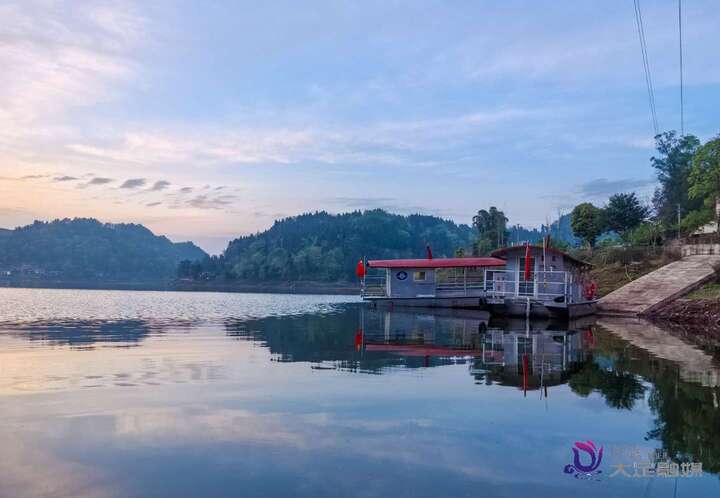 作为大足区重要的水利民生工程,化龙水库总库容达2185万立方米,承担着供水、灌溉与生态维护等多重功能。春日里,库区四周林木葱郁,湛蓝的天空倒映在碧波之上,水面波光粼粼,偶有游船缓缓驶过,为静谧的山水增添了灵动气息。