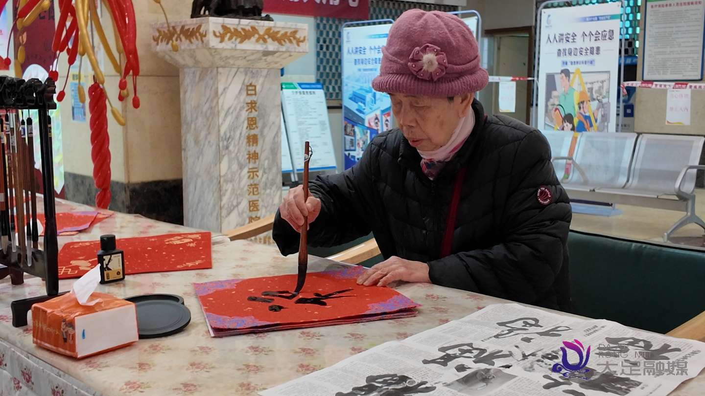 活动现场喜气洋洋,红色的春联、展板、气球烘托出新春的节日氛围,长者们与陆续赶来的家人手持灯笼、“福”字拍摄全家福,脸上洋溢着幸福、喜悦的笑容。擅长书法的长者挥毫泼墨,一个个不同书法字体的“福”字跃然纸上,让传统年俗在笔尖流转。