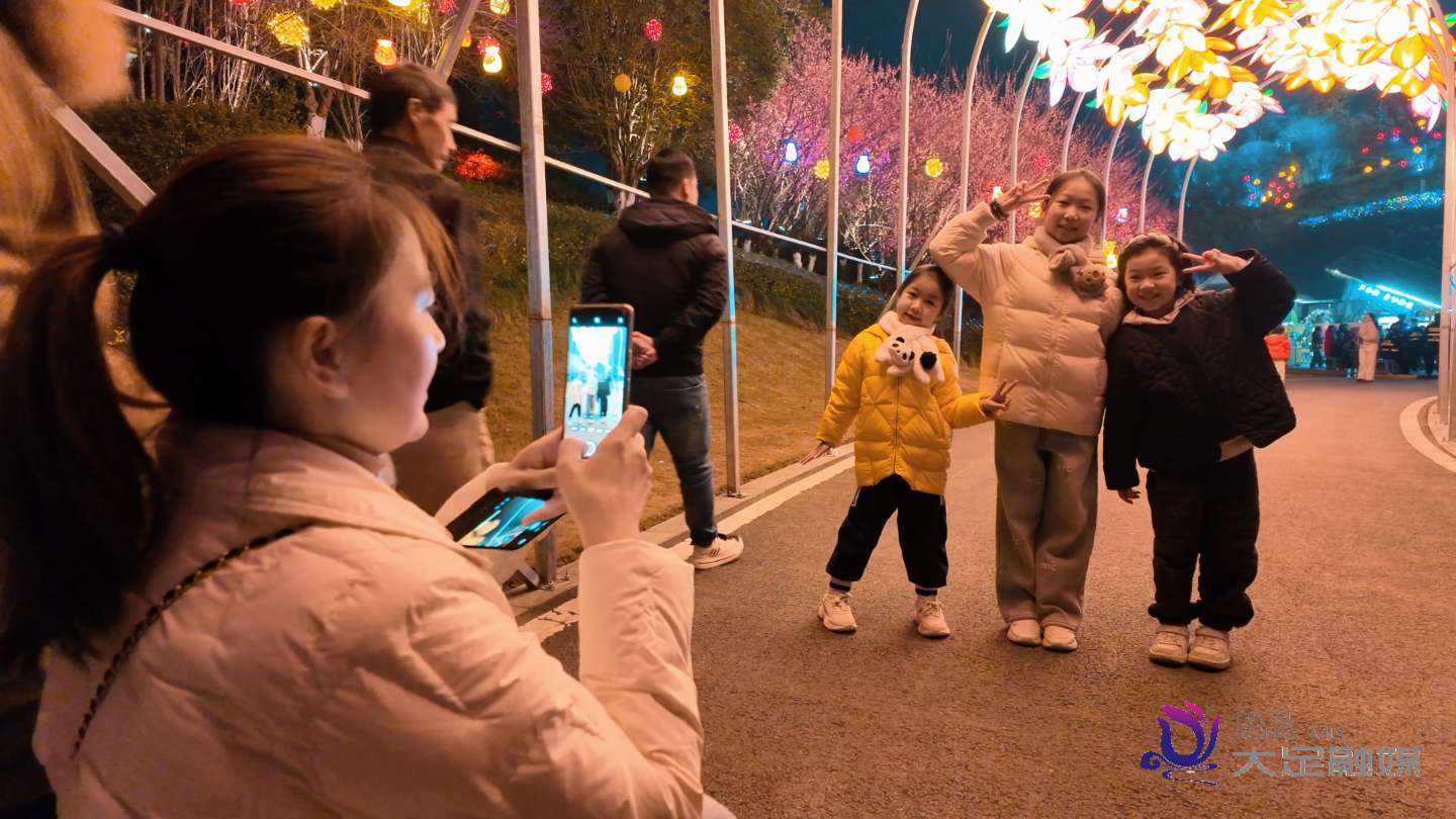 这场光影盛宴成为传承本土文化的“别样课堂”,孩子们在绚烂灯组间穿梭,近距离接触石刻造像与民俗元素,在游玩中加深对家乡文化的认知与热爱。“灯光让石刻变得生动有趣,既好看又能学到知识。”一位小朋友的感慨,道出了灯会的文化传播价值。游客们纷纷表示,灯会将传统民俗与新春年味完美融合,既有文化厚度,又有时尚活力,漫步其间,仿佛穿越千年,在光影流转中感受大足的独特魅力与幸福年味。
