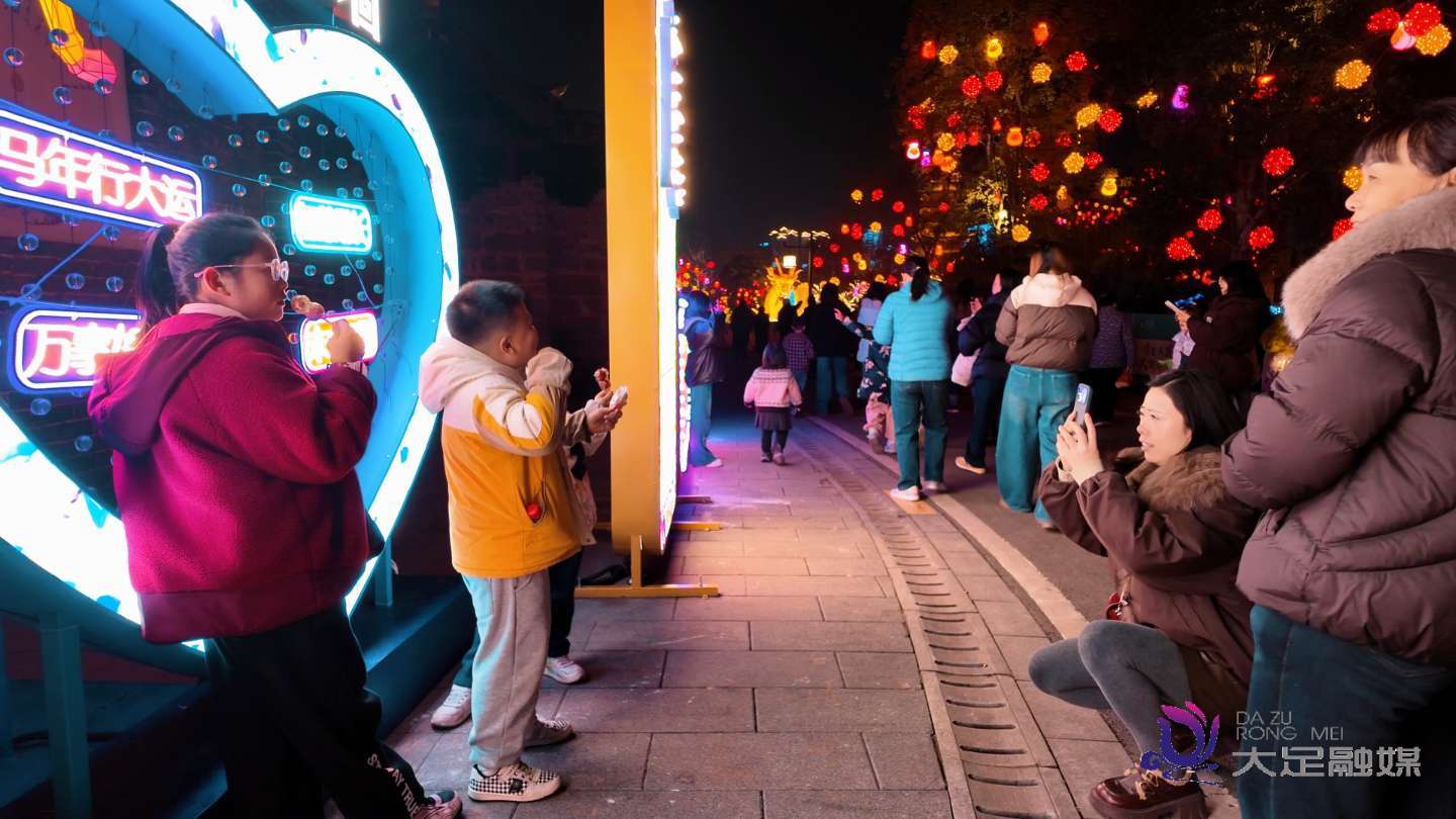 “我们将大足石刻的千年底蕴与现代光影技术深度融合,打造多元消费场景,目的就是让传统年味‘潮’起来,让文旅消费‘火’起来。”大足区城市管理局相关负责人表示,灯会既为市民营造了喜庆祥和的节日氛围,也进一步提升了大足石刻的文化影响力,为文旅经济高质量发展注入新活力。